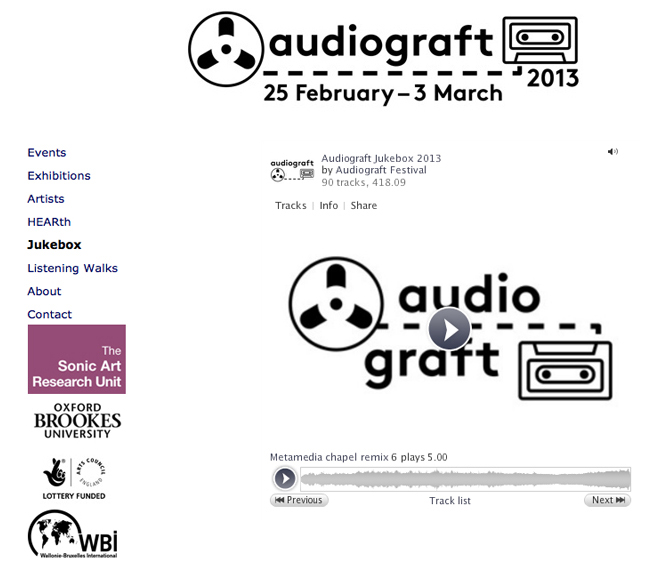 Included in ‘jukebox’ at audiograft 2013 festival Oxford.